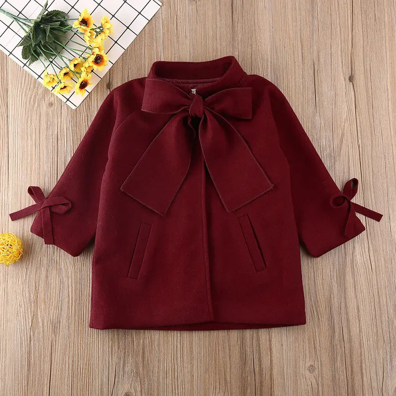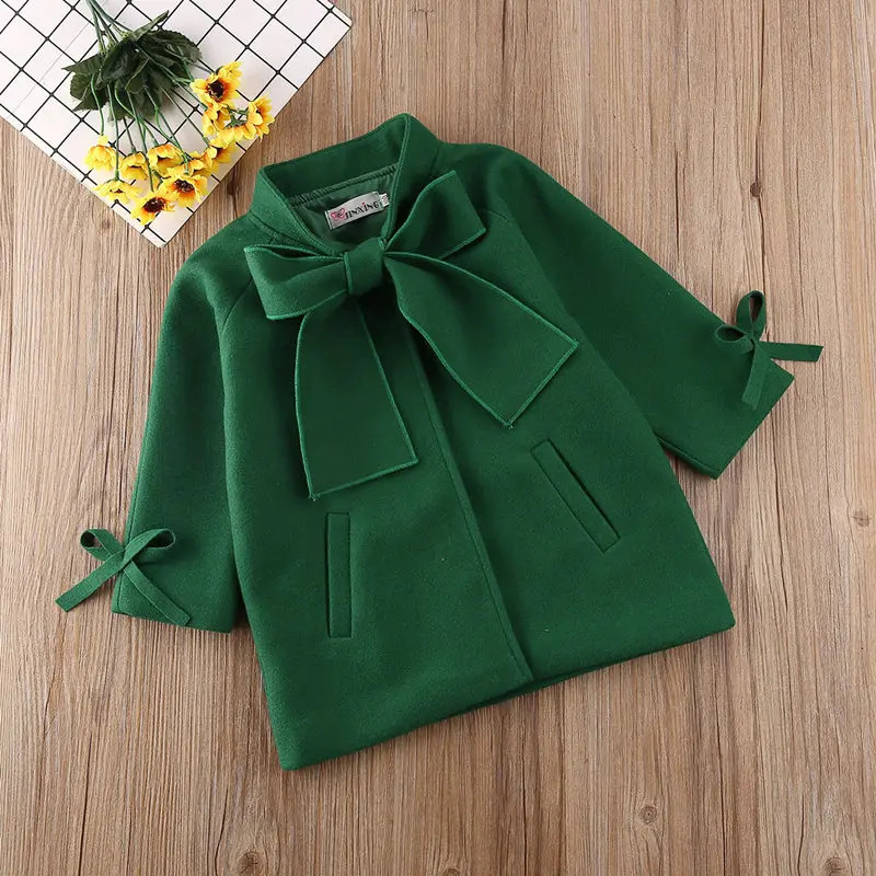 Girls Overcoat Woollen Bowknot
